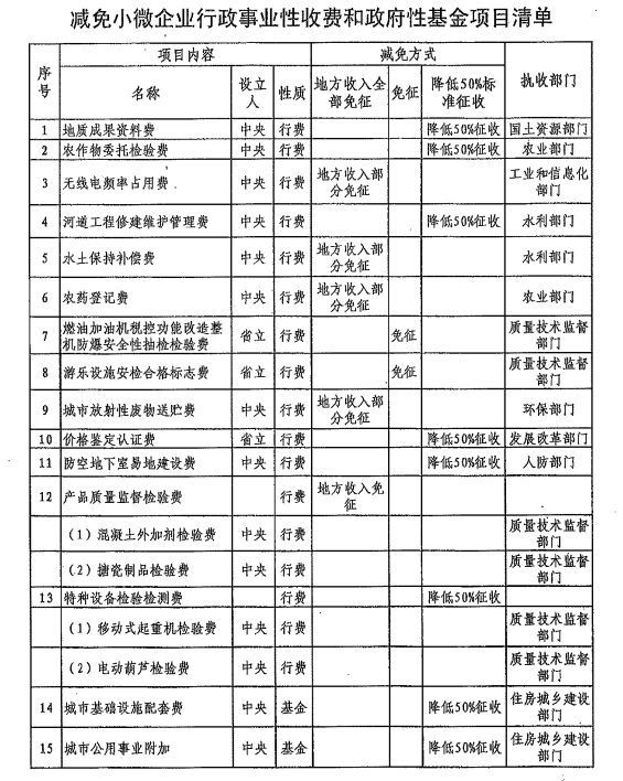 转发《关于减免对小微企业行政事业性收费和政府性基金项目的通知》的通知