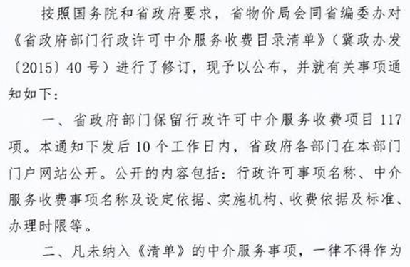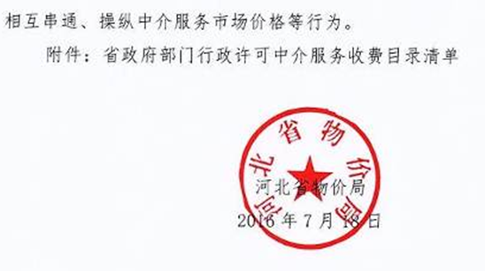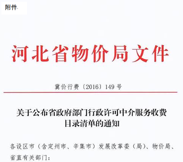 现将河北省物价局《关于公布省政府部门行政许可中介服务收费目录清单的通知》转发给你们,请遵照执行。